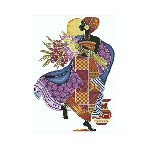 Africana con flores es un patrón o esquema en punto de cruz, perfecto para decorar cualquier rincón de tu hogar. Aporta personalidad a los amantes de los productos étnicos