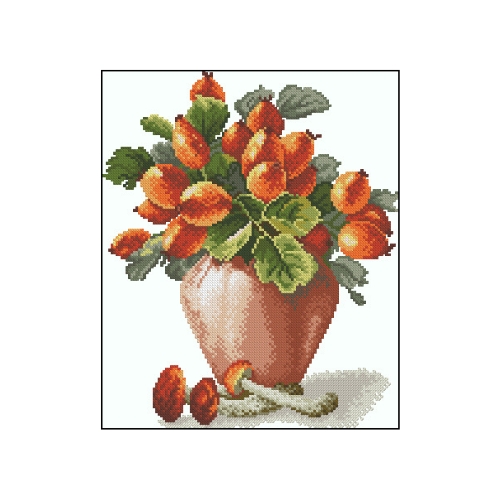 Bayas y setas es un patrón o esquema en punto de cruz, perfecto para decorar cualquier rincón de tu cocina.