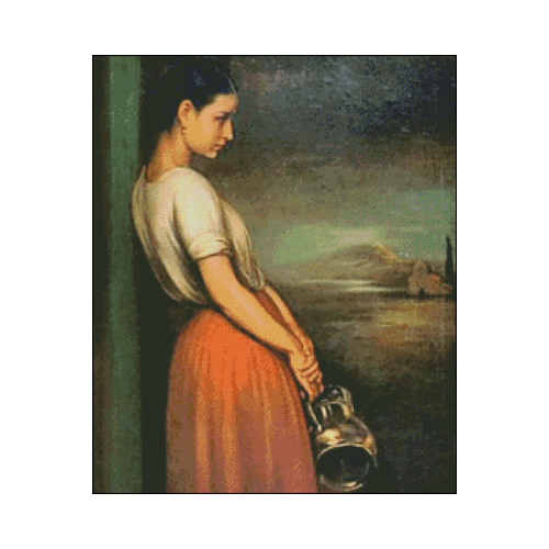 Joven con jarra Julio Romero de Torres es un patrón o esquema en punto de cruz, perfecto para decorar cualquier rincón de tu hogar o salón.