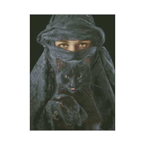 Lady black cat es un patrón o esquema en punto de cruz, perfecto para decorar cualquier rincón de tu hogar. El gato como simbolo de suerte