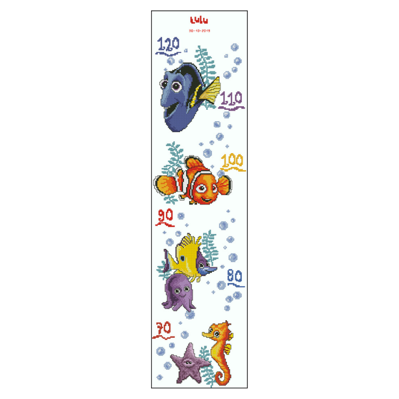 Medidor infantil nemo es un patrón o esquema en punto de cruz, perfecto para decorar cualquier rincón de una habitación infantil.