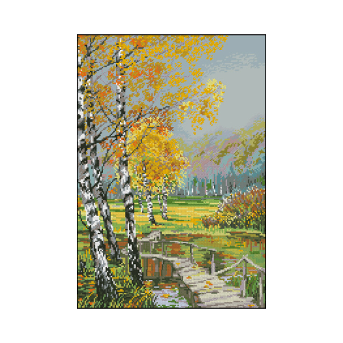 Otoño en el río es un patrón o esquema en medio punto, perfecto para decorar cualquier rincón de una estancia o salón.