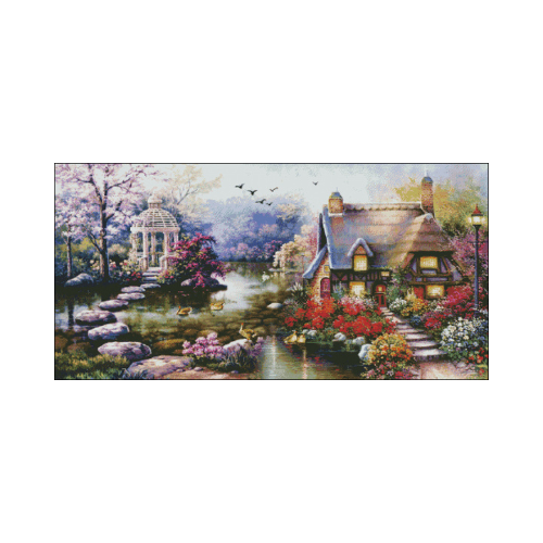 - Casa en el lago es un patrón o esquema en punto de cruz, perfecto para decorar cualquier rincón de una estancia.