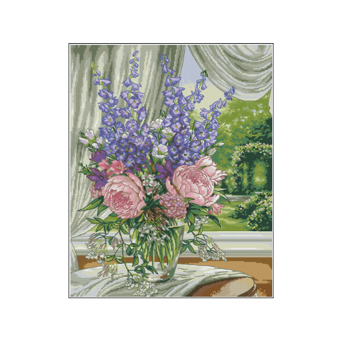 Ramo de peonias es un patrón o esquema en punto de cruz, perfecto para decorar cualquier rincón de tu hogar.